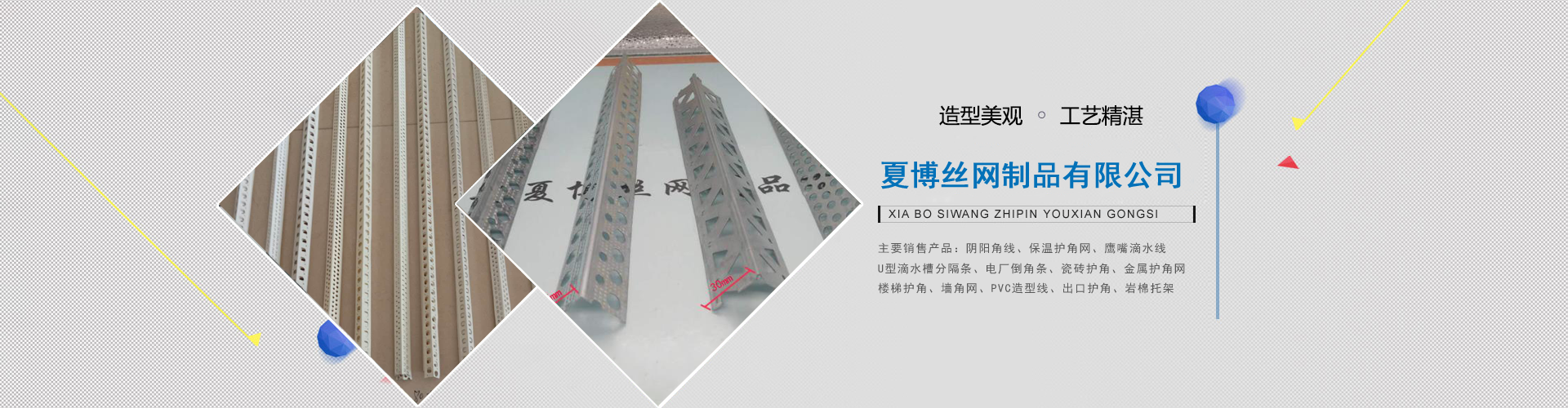 安平夏博絲網制品有限公司多年專業生產齊全的陰陽角線,保溫護角網,帶網U型分隔條,鍍鋅板沖孔護角條等產品。以科技為基礎,質量為根本!